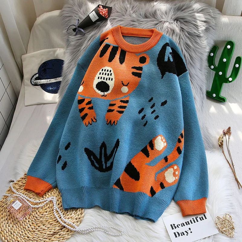 2020 Autumn Winter Women Kawaii Sweater Oversized Knitted Thicken Pullovers Cartoon Outwear Ropa Mujer Loose Casual Ladies Tops