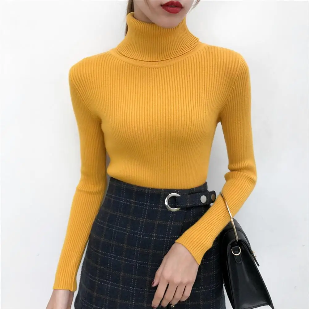 Autumn Winter basic Sweater Women Knitted Ribbed Pullover Sweater Long Sleeve Turtleneck Slim Jumper Soft Warm Pull Femme