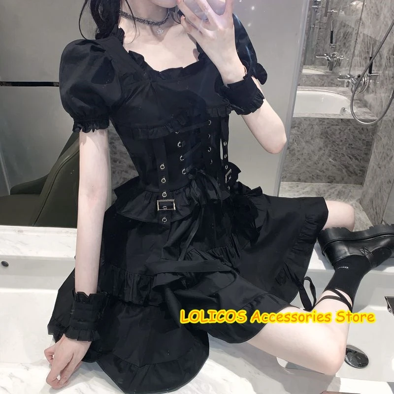 Gothic Style Sexy Women's Puff Sleeve Short Sleeve Dress Hard Girl High Waist Casual A Line Street Dresses Summer Female 2020