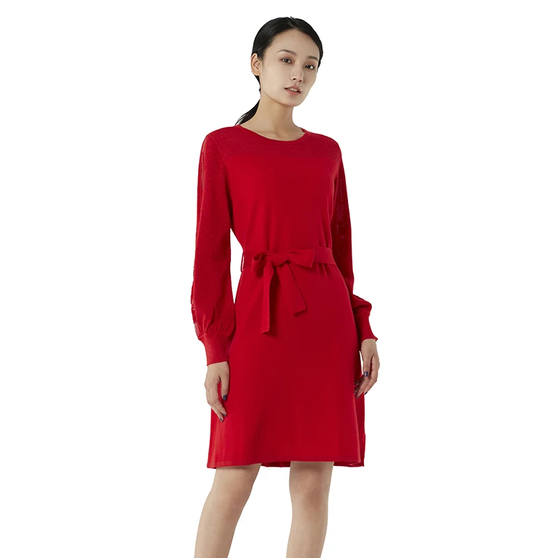 Kintted Dress Women Fashion Solid Embroidery Knitted Sweater Dress O-Neck Casual Long Sleeve A-Line Mini Dresses